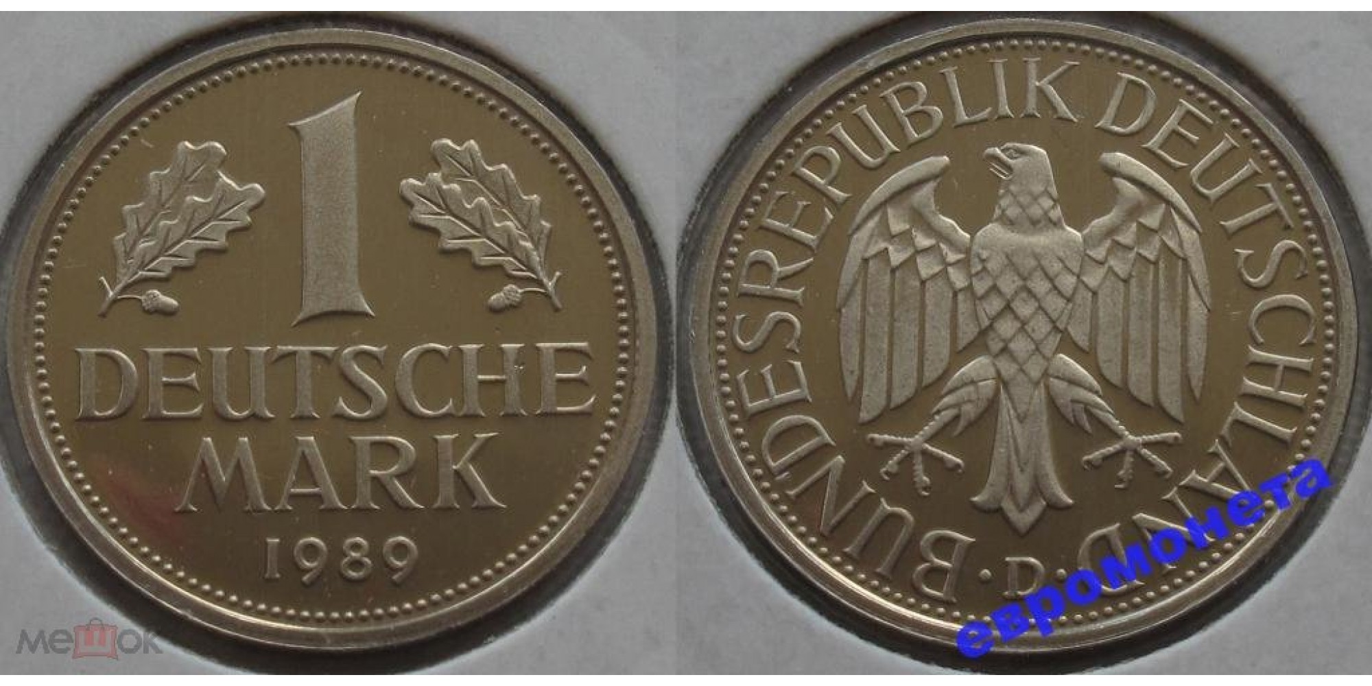 ФРГ 1 марка 1989 год Отметка монетного двора: "D" - Мюнхен