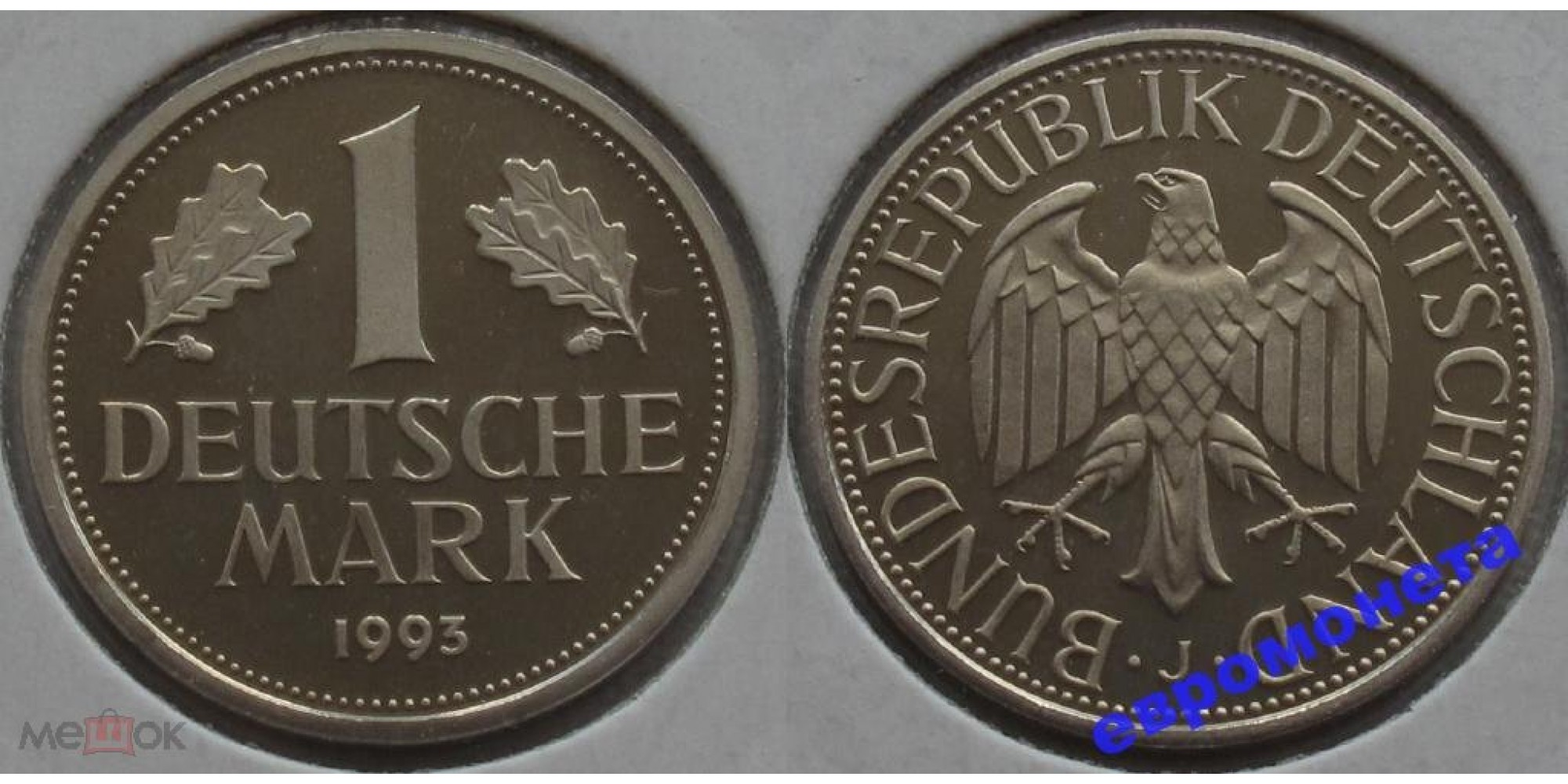 ФРГ 1 марка 1993 год Отметка монетного двора: "J" - Гамбург