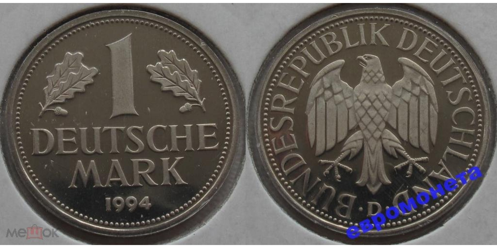 ФРГ 1 марка 1994 год Отметка монетного двора: "D" - Мюнхен