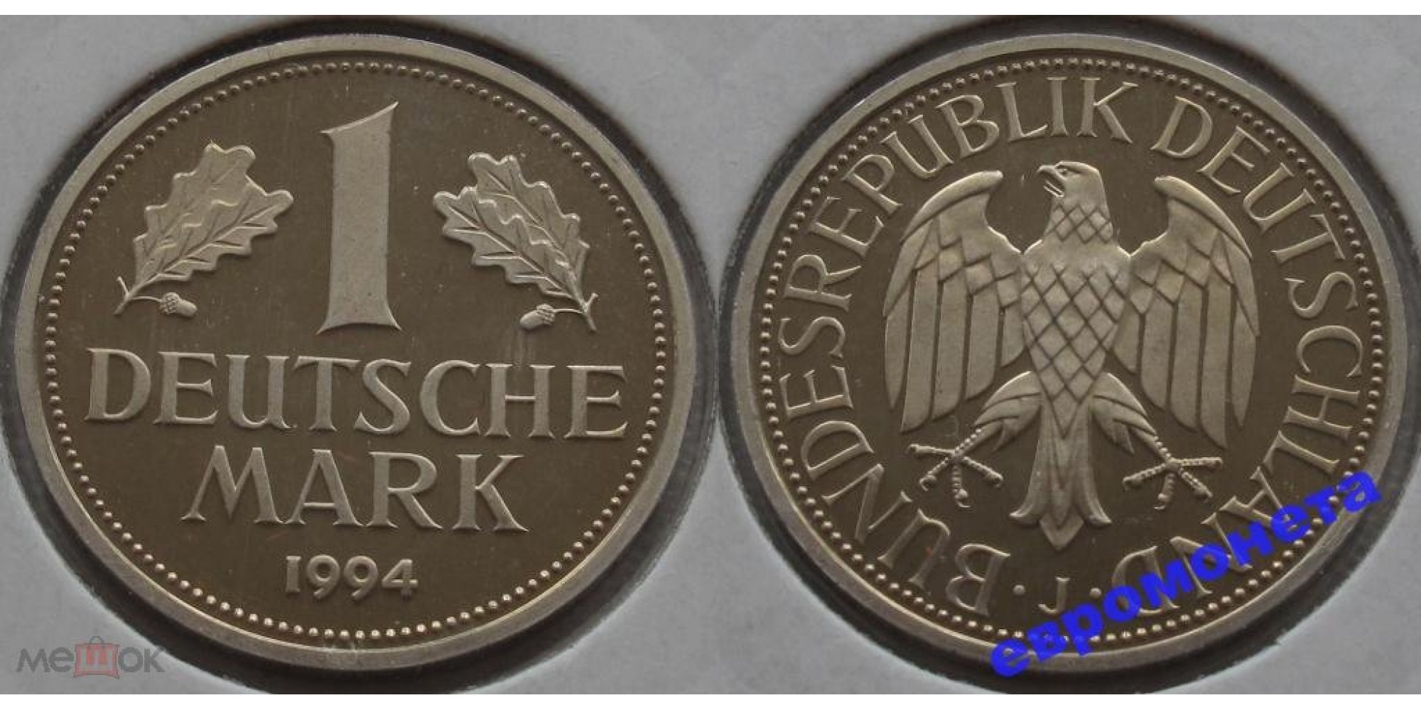ФРГ 1 марка 1994 год Отметка монетного двора: "J" - Гамбург