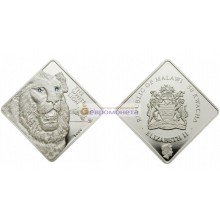 Малави 50 квач 2009 год Редкая дикая природа - Белый лев. Пруф. Серебро. 2 унции.(Гарантия подлиннос..