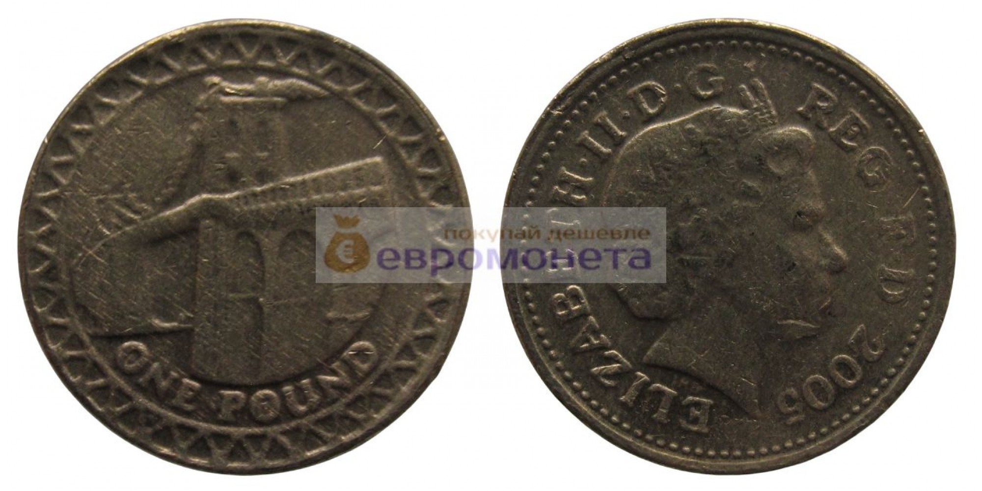 Великобритания 1 фунт 2005 год Висячий мост через Менай Королева Елизавета II