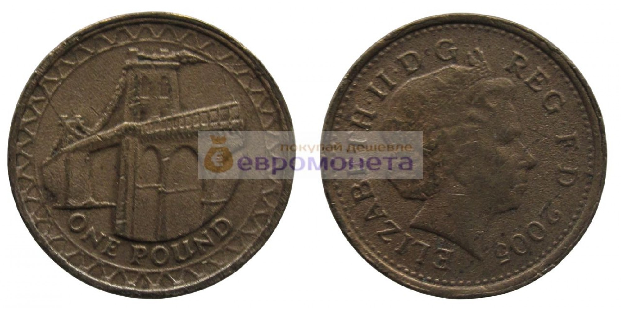 Великобритания 1 фунт 2005 год Висячий мост через Менай Королева Елизавета II